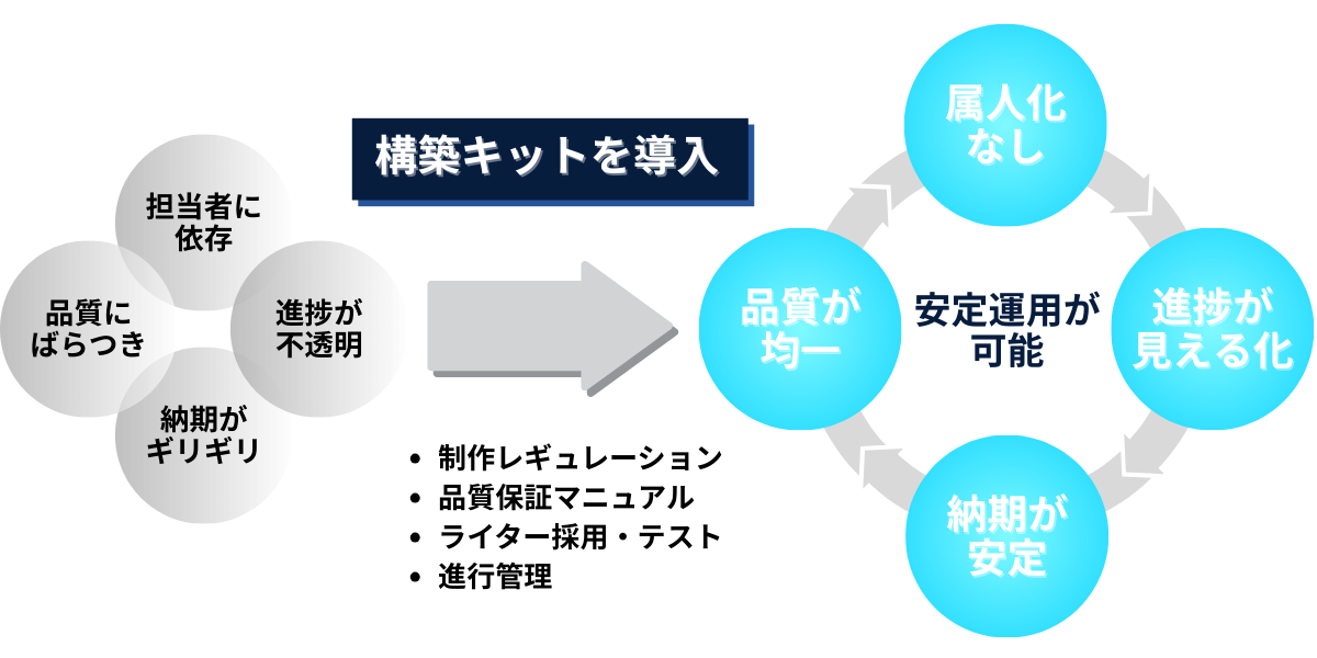 AIオペレーション構築パックに加え、ライター採用代行や教育資料の作成まで。ゼロから拡大したい企業様向け。